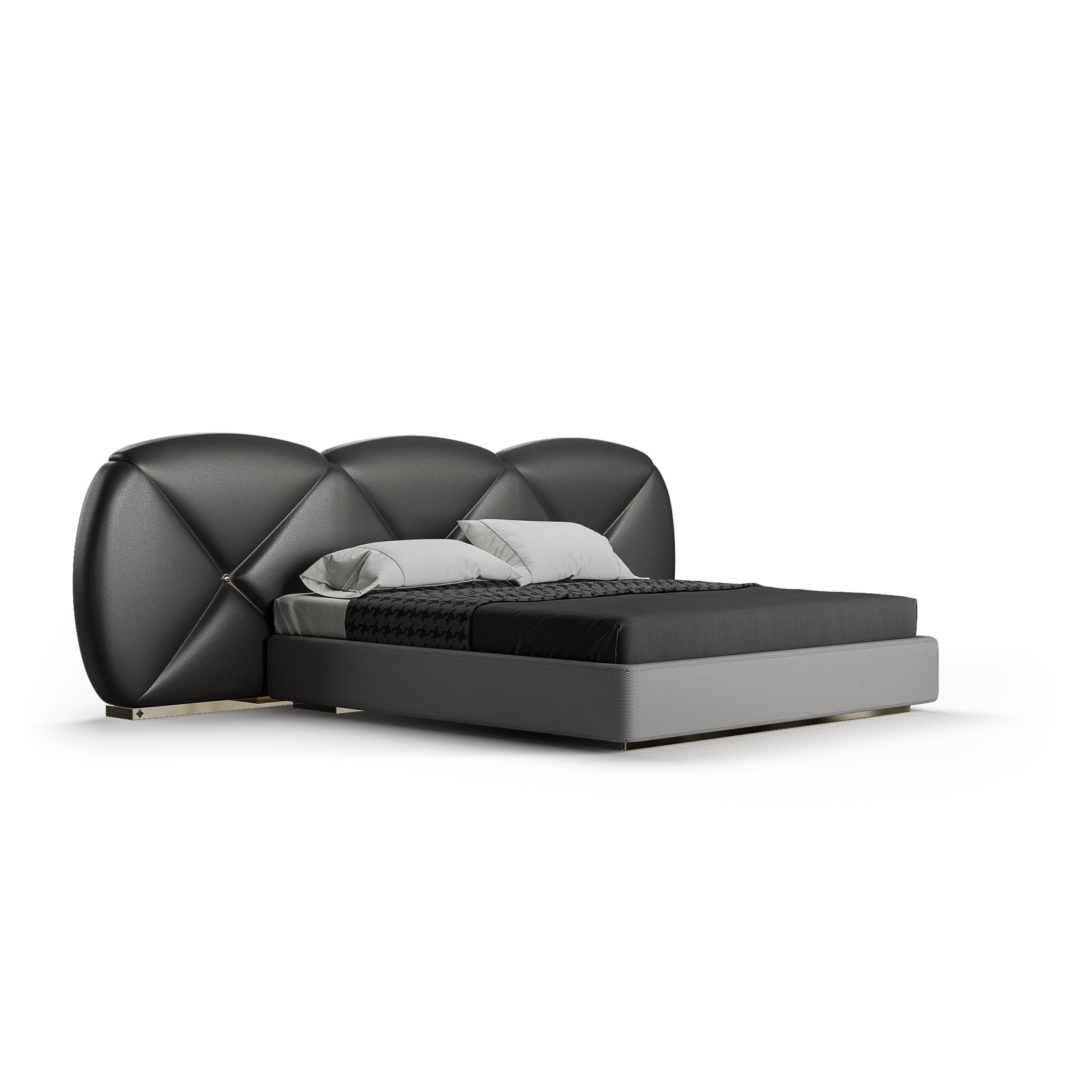 The Diamond bed embodies the essence of luxury, inspired by the brilliance and allure of nature’s finest gemstones. Its headboard features three sculpted diamond-shaped panels, exuding elegance and sophistication while offering an architectural statement to the bedroom.